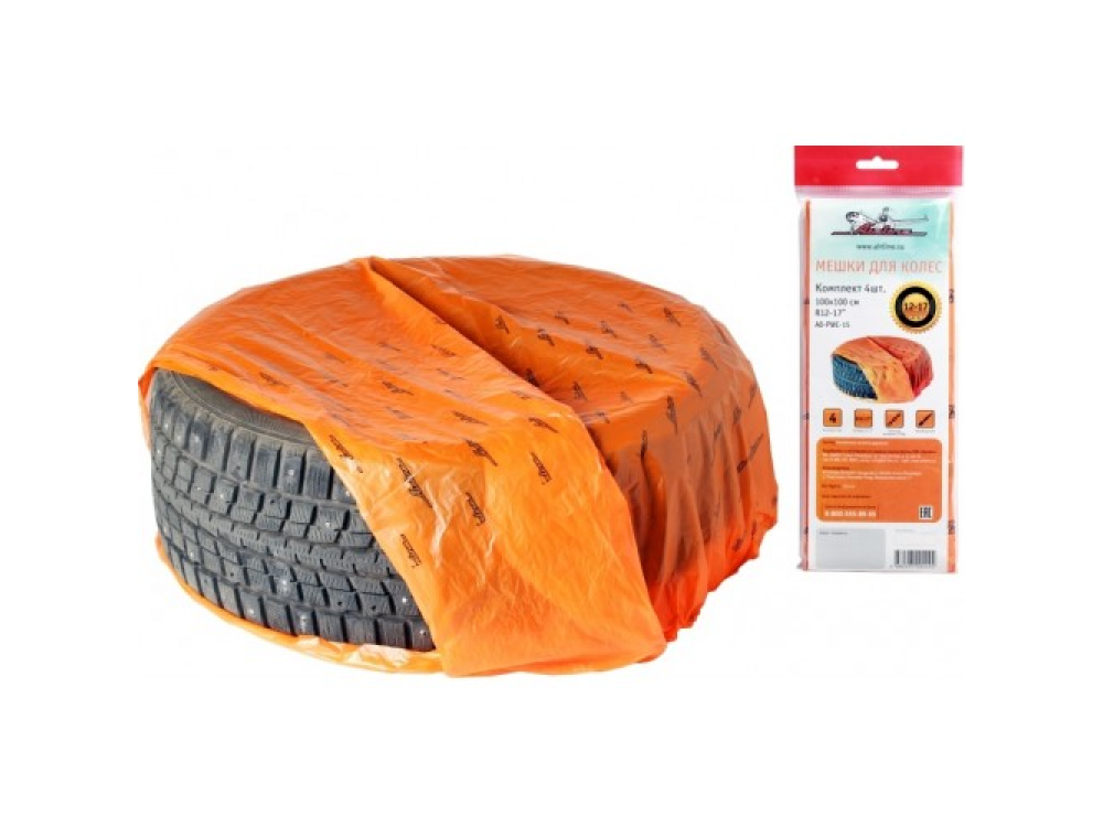 Мешки для хранения колес – это один из самых доступных и бюджетных вариантов хранения колес. Мешки имеют размер 100х100 и подходят для колес любых габаритных характеристик. Материал для мешков – полиэтилен низкого давления, он предотвращает попадание на покрышки прямых солнечных лучей и влаги. Мешки предназначены для хранения колес R12-R17, изготовлены из полиэтилена низкого давления. Мешки упакованы по 4 штуки. Размер: 100х100см.