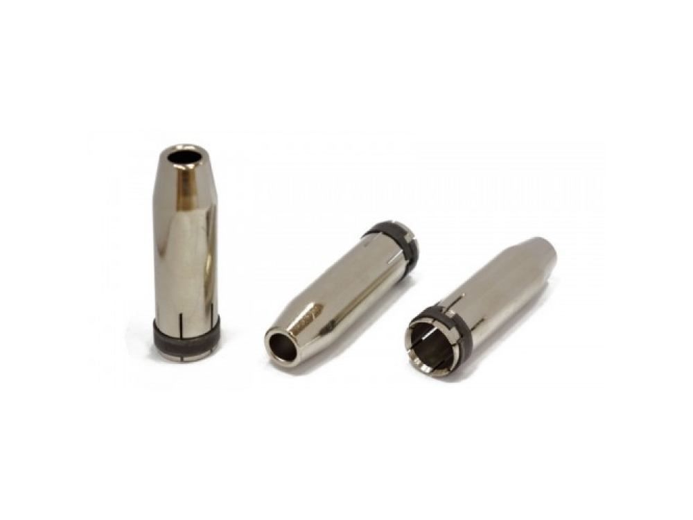 Сопло MIG-MAG - это расходная часть горелки, которая отвечает за формирование струи защитного газа в процессе полуавтоматической сварки. В процессе работы сварочные брызги налипают на сопло, а продолжительные работы на максимальных токах выжигают сопло изнутри. Поэтому деталь приходится периодически менять. Для того, чтобы продлить жизнь расходнику – сопло необходимо время от времени зачищать.