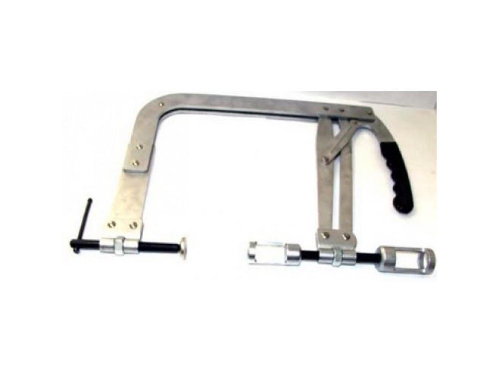 Рассухариватель клапанов для бензиновых и дизельных двигателей больших рабочих объемов. Глубина скобы 250 мм. Диапазон захвата от 45 мм до 145 мм. Изделие снабжается двусторонним сменным толкателем с насадками разных диаметров - 25 и 30 мм, для разных размеров тарелок возвратного механизма клапанов.