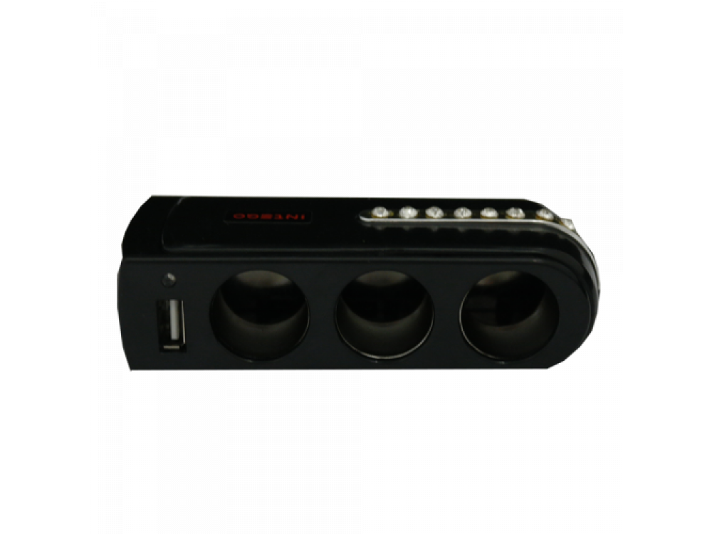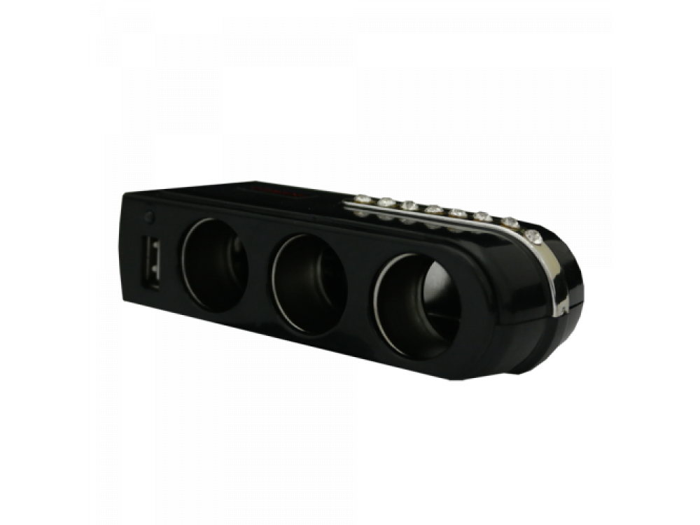 Разветвитель гнезда прикуривателя (12/24 В) на 3 входа с максимальным суммарным током нагрузки 10 А + зарядное устройство с 1 USB входом (5 V / 1000 mA).