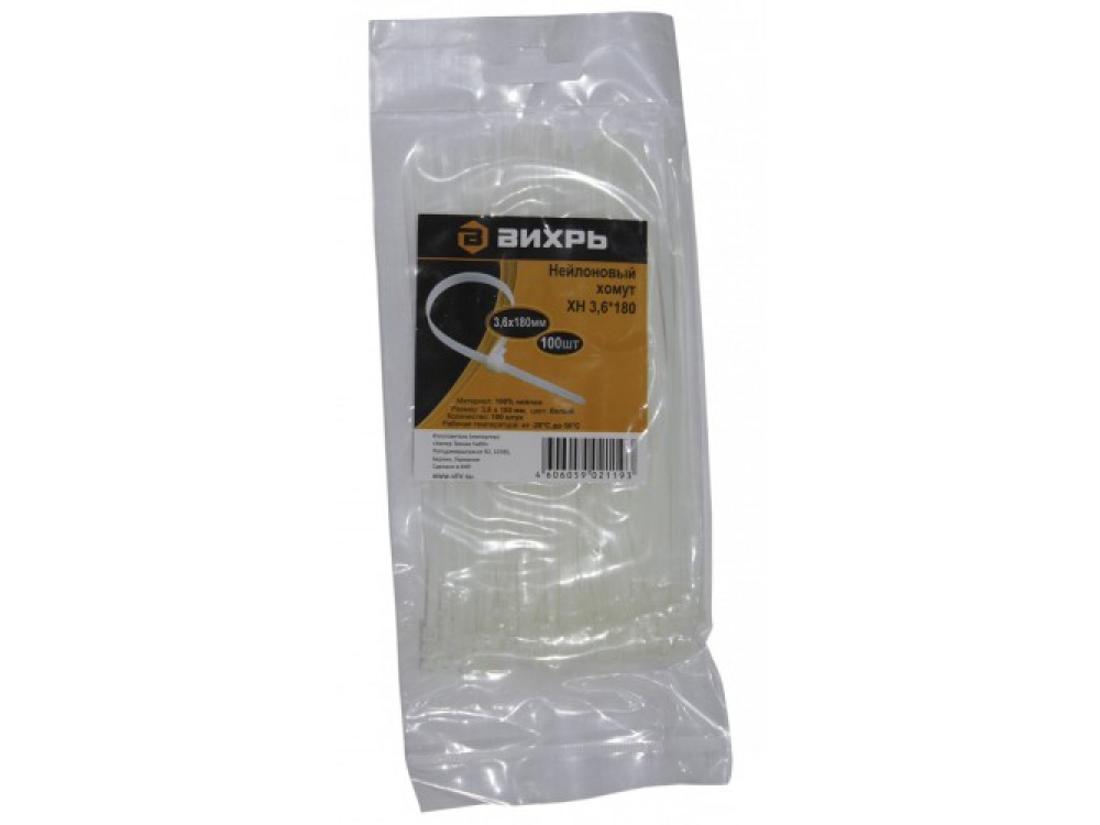 Хомут нейлоновый 3,6*180 Б (100шт)