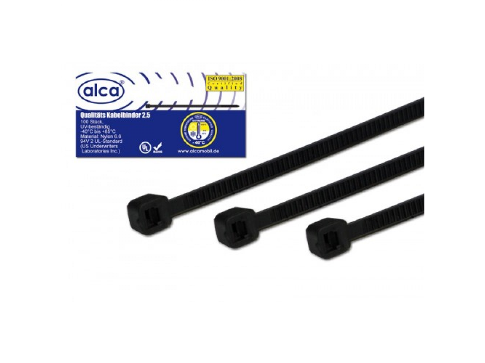 Хомут—стяжка кабельная пластиковая W2.5 L150, цвет черный, 100 шт. в упаковке, температура эксплуатации от — 40 до + 85, материал нейлон, устойчивость к окислению и травлению.