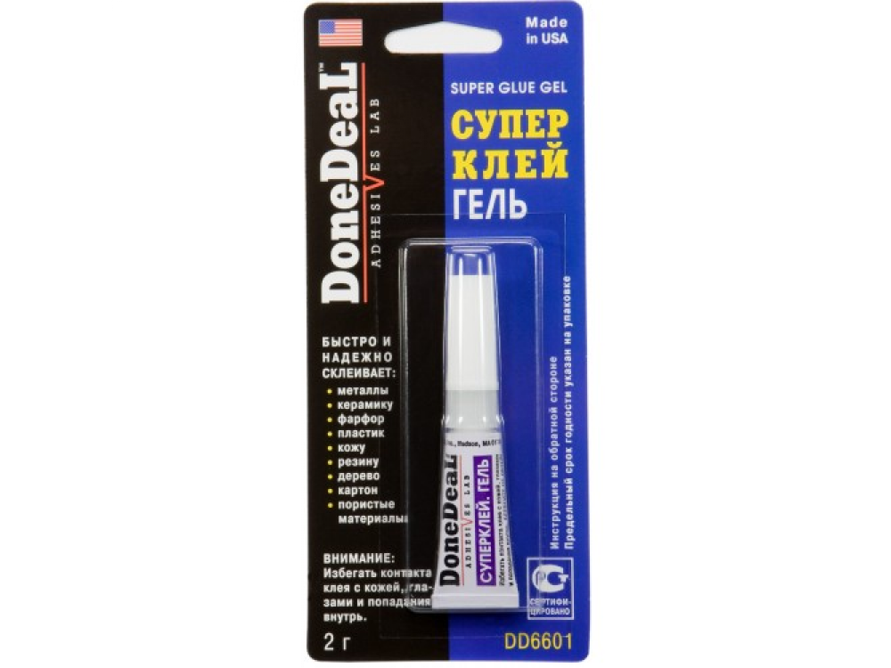 Универсальный цианакрилатный клей (суперклей) для склеивания различных материалов, обладающий высокими тиксотропными свойствами (не стекает с вертикальных поверхностей). Универсальный суперклей, предназначенный для быстрого и надежного склеивания различных материалов. Обладает высокой прочностью. Характеристики:Состав - цианакрилат.Цвет - прозрачный.Термоустойчивость - от -50°С до +95 °С.Прочность соединения - 204 кг/см2.Время схватывания - 15 сек.Время отвердевания - 1 мин.Время полной полимеризации - 24ч. Область применения: Быстро и надежно склеивает:металлы;керамику;пластик;резину;фарфор;кожу;дерево;картон;пористые материалы. Особенности и преимущества: DD6601 высокими тиксотропными свойствами (не стекает с вертикальных поверхностей);обладает хорошей адгезией к большинству материалов;высоковязкая гелиевая формула удобна для нанесения на вертикальные поверхности и склеивания пористых материалов;непродолжительное время отвердевания позволяет значительно сократить и упростить технологические операции склеивания;упаковка имеет вмонтированную в крышку пластиковую иголку, которая прочищает отверстие и предотвращает застывание клея.