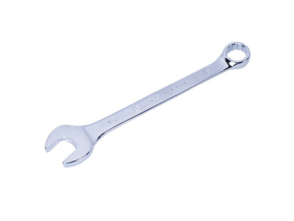 Ключи комбинированный МАСТАК 021-10018H применяется для выполнения любых видов работ с крепежом - как дома, в гараже, в авто-слесарной мастерской, станции технического обслуживания авто, мото и другой техники, так и на производстве. Изготовлен из инструментальной легированной хром-ванадиевой стали специального сплава, состоящего из 15 элементов, входящих в его состав. Хромированное покрытие защищает от коррозии и придаёт благородный матовый оттенок. Особенности: - Специальный изгиб 15° позволит работать в местах с ограниченным доступом к крепежу; - Накидная и рожковая части помогут подобраться к крепежу как с торца, так и с боку, в зависимости от места выполняемых работ; - 12-тигранный профиль накидной части универсален в работе с головками болтов или гайками как 6-ти, так и 12-тигранного профиля. Технические характеристики: - Размер: 18 мм - Длина(L): 220 мм
