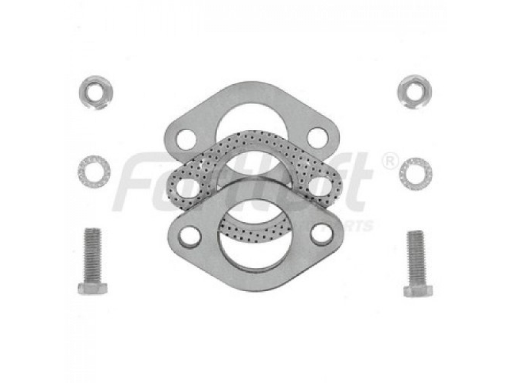 Фланцевое соединение является одним из самых основных соединений компонентов выхлопной системы. Один фланец приваривается к одной части выхлопной трубы, другой к ответной и соединяется болтами через прокладку. Толщина фланца 8мм, изготовлен фланец из нержавеющей стали, что обеспечивает долгосрочный срок эксплуатации.