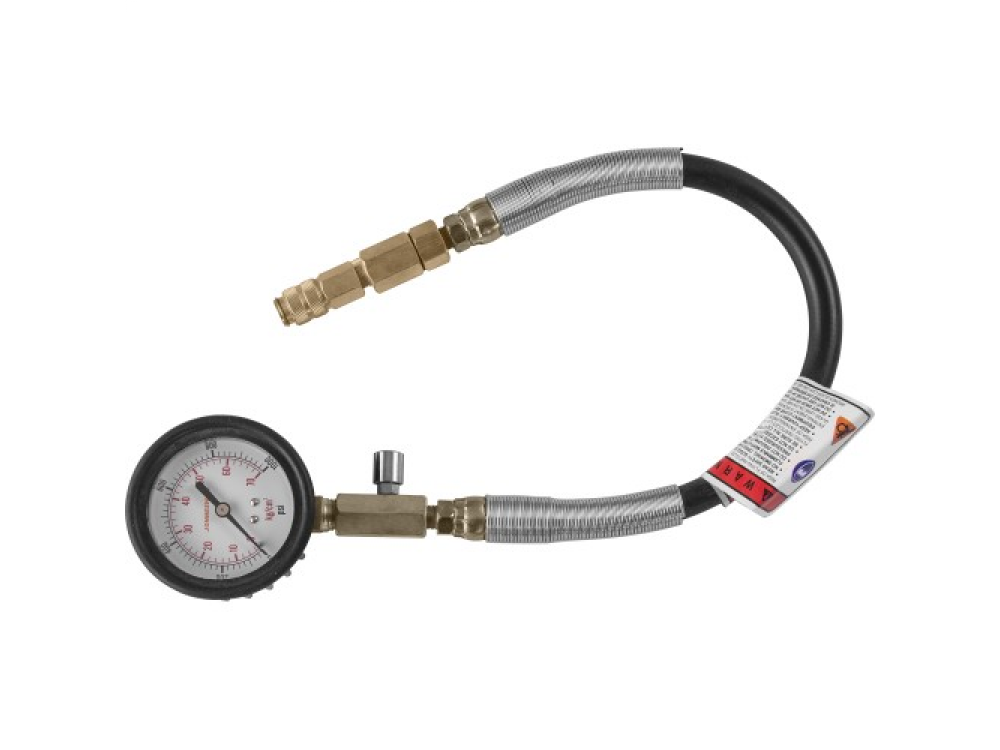 Компрессометр применяется для контроля состояния деталей цилиндро-поршневой группы и ГРМ дизельных двигателей грузовых автомобилей. Прибор комплектуется большим 100 мм манометром в ударопрочном, обрезиненном корпусе. Манометр рассчитан на измерение давления в диапазоне 0 - 60 кгс/смкв.. Соединительный, армированный шланг высокого давления, длиной 355 мм, имеет быстросъемный переходник для соединения с форсуночным адаптером.