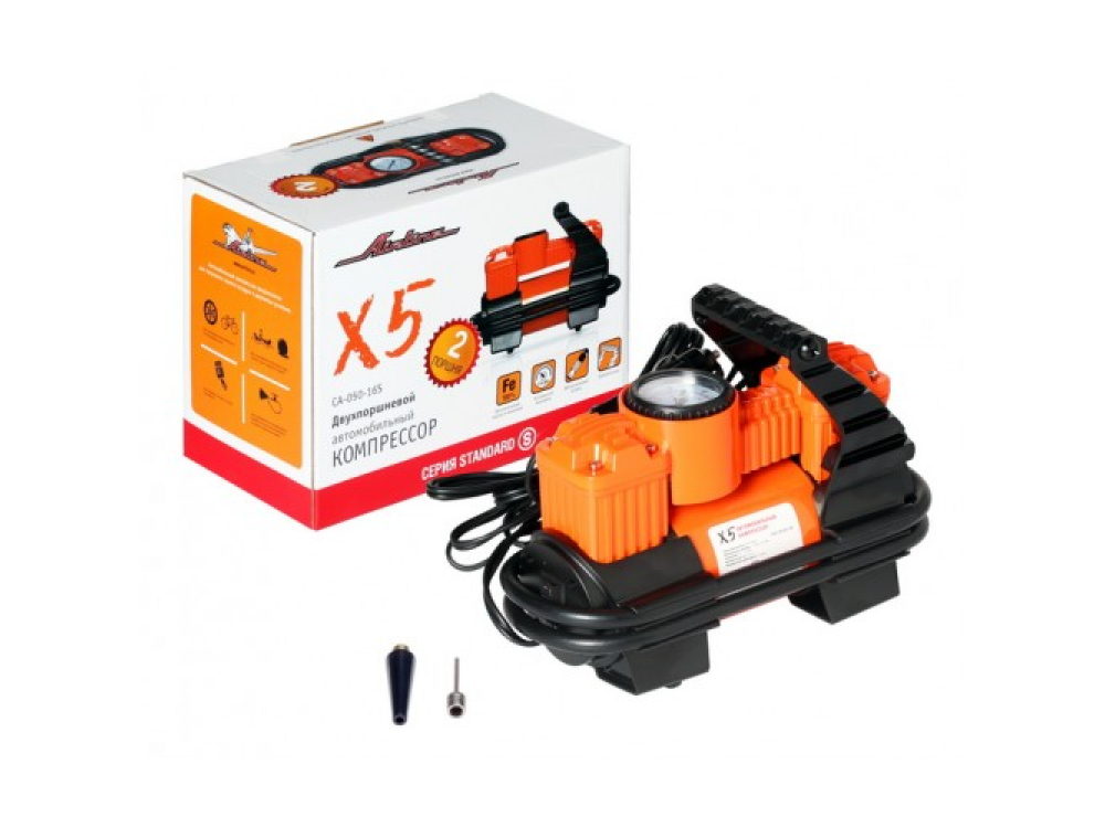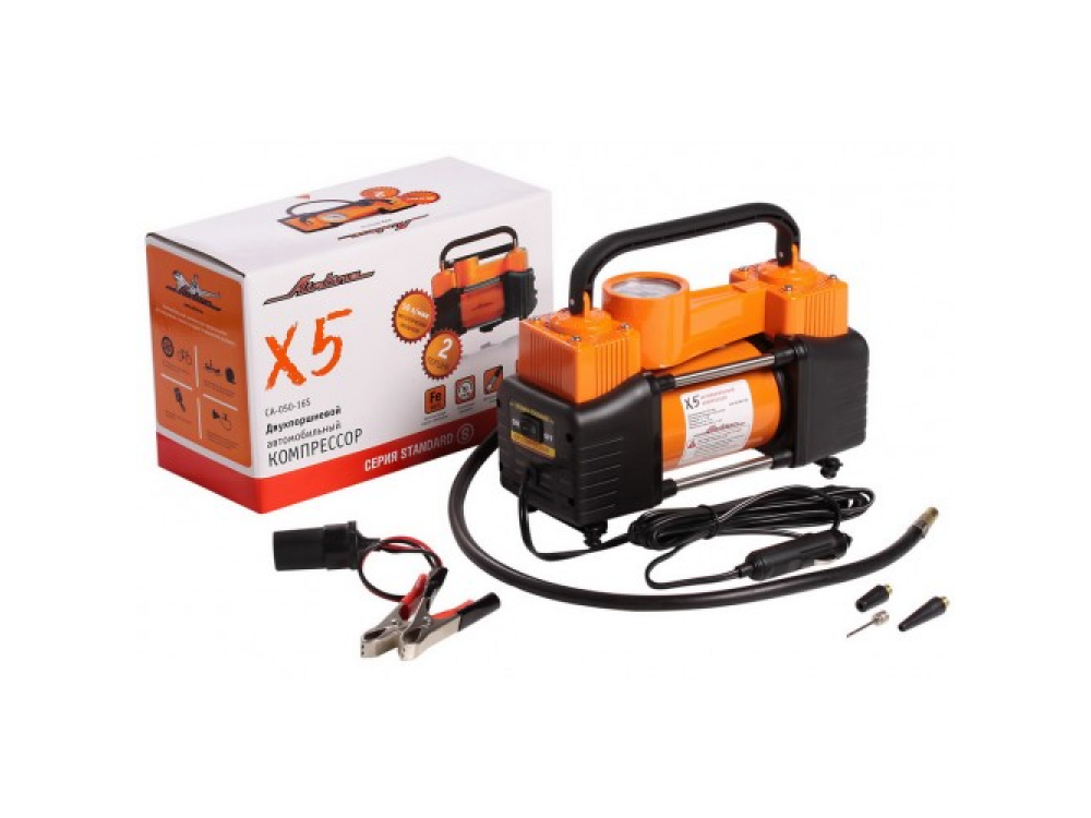 Высокая производительность и двухпоршневой механизм делают компрессор X5 самым мощным в серии AIRLINE. Усовершенствованная технология позволила увеличить показатели оборотов и снизить время, необходимое для ремонта. Напряжение при работе компрессора составляет 12 – 13.5 В. Эксплуатация осуществляется от прикуривателя автомобиля.