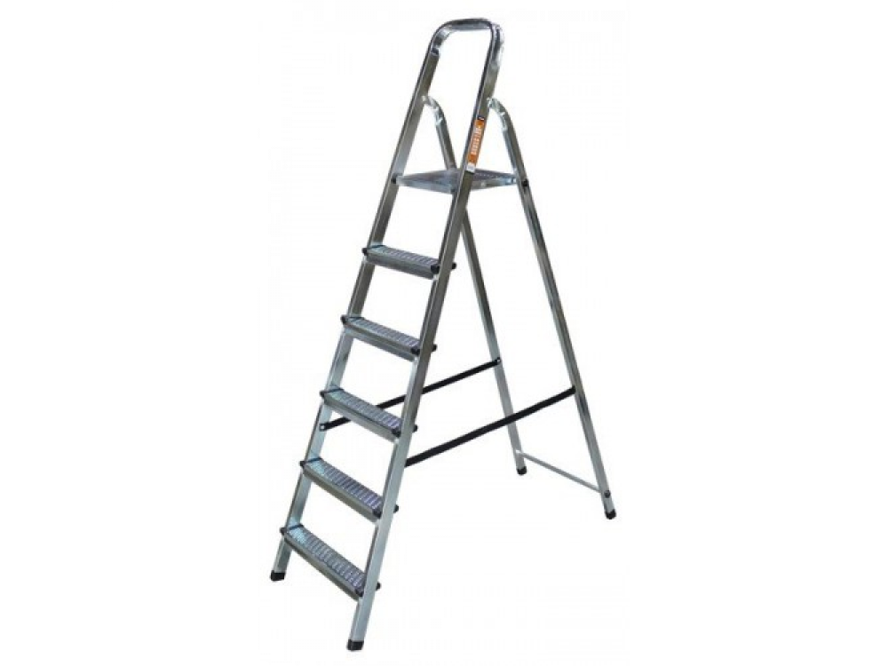 Стальная стремянка Вихрь СС 1х6 73/5/1/10 используется в быту. Имеет шесть широких рифленых ступенек.