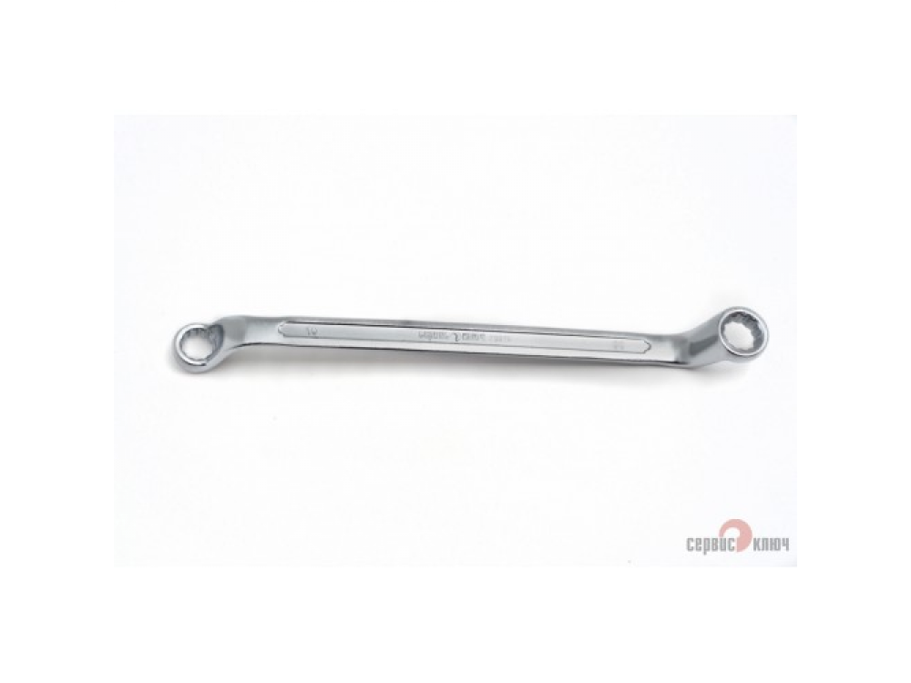 Двусторонний накидной ключ со смещением. Имеет на обоих концах 12-гранные накидные профили. Накидной профиль со смещением предоставляет более широкие возможности при работе в ограниченном пространстве. Изготовлен из высококачественной хромованадиевой (Crv) стали методом холодного штампа, тверность 40-45 HRC.