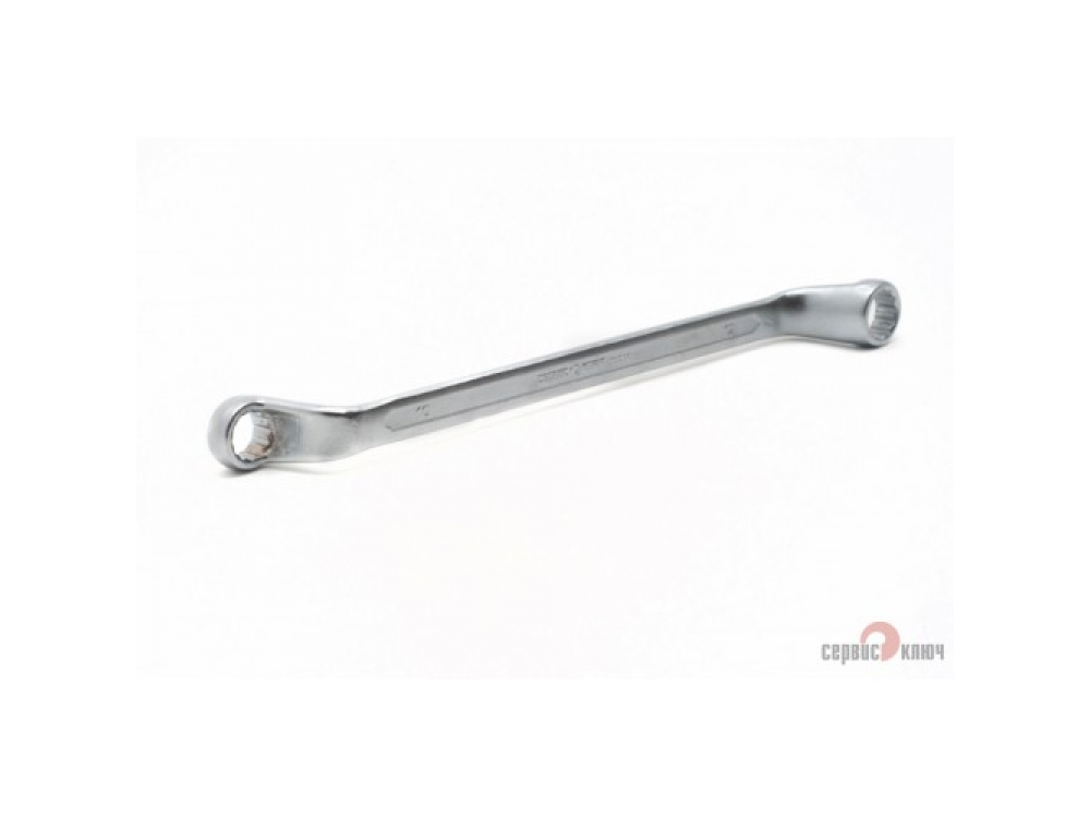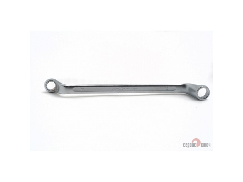 Двусторонний накидной ключ со смещением. Имеет на обоих концах 12-гранные накидные профили. Накидной профиль со смещением предоставляет более широкие возможности при работе в ограниченном пространстве. Изготовлен из высококачественной хромованадиевой (Crv) стали методом холодного штампа, тверность 40-45 HRC.