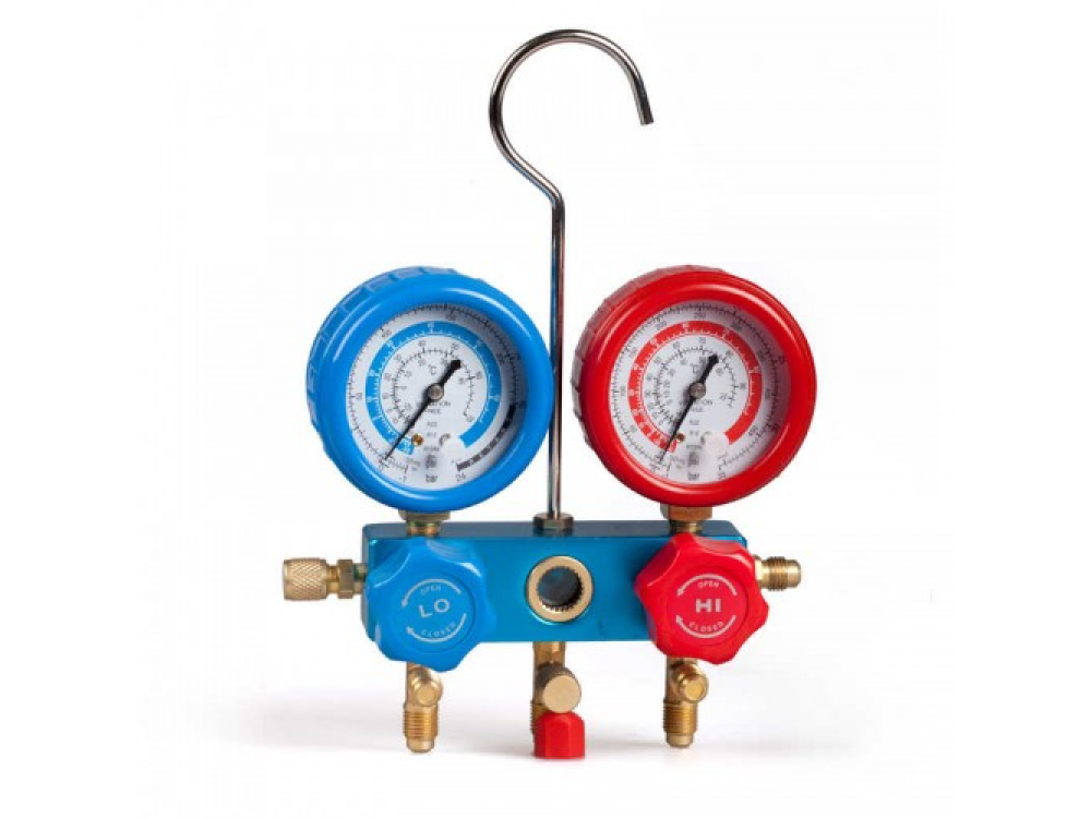 CT-M1000 Манометрический коллектор комплектуется шлангами и предназначен для заправки, диагностики систем кондиционирования воздуха хладагентом R134. Данный коллектор применяется для обслуживания автомобильных кондиционеров: легкового, грузовго, коммерческого транспорта, спецтехники и т.п. Комплектация набора инструментов для кондиционеров - 2-х вентильный манометрический коллектор для R314 - Заправочные шланги (синий, красный, желтый) длиной 1,5 м - Быстросъемные соединения для низкого и высокого давления