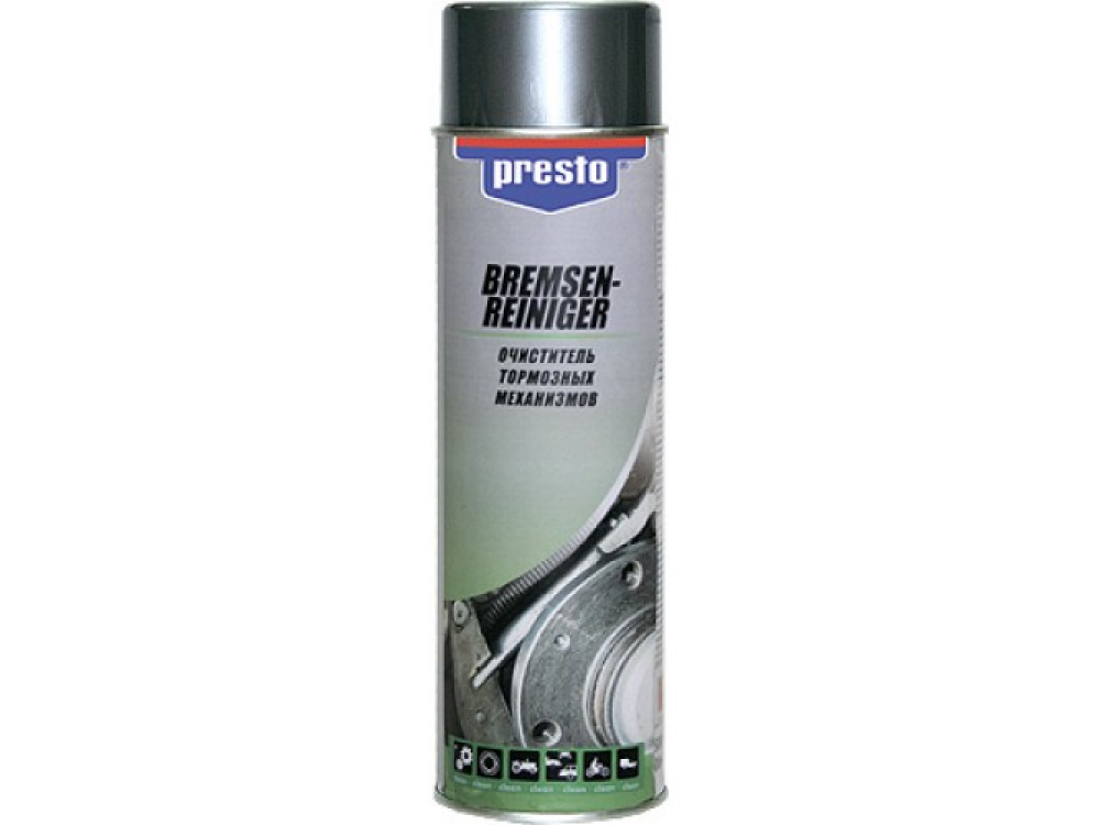 Очиститель тормозных механизмов PRESTO предназначен для удаления смазочных материалов, грязи и тормозной жидкости, а также кислот с тормозных барабанов, дисков, колодок, проводов, цилиндров и деталей сцепления. Предотвращает скрип тормозов, тщательно очищает элементы двигателя, механизмы и другие части автомобиля, не оставляя пятен.