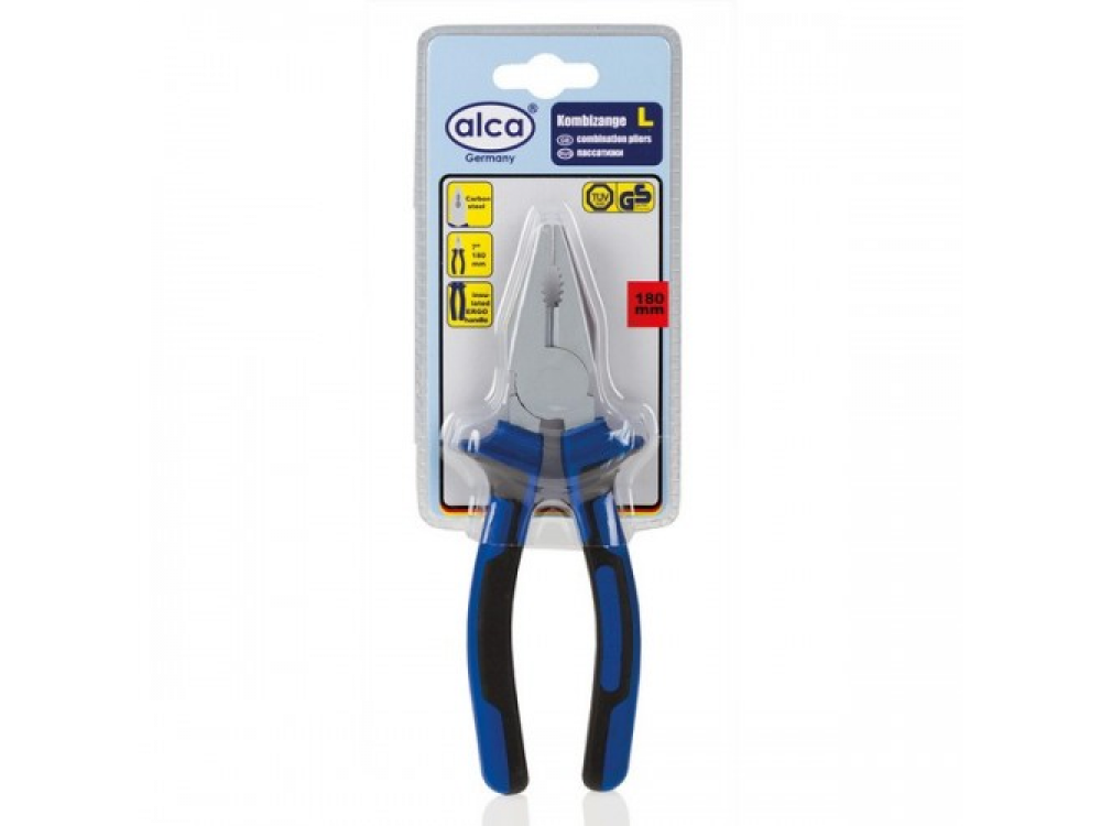 Пассатижи комбинированные 180 мм. Карбоновая сталь твердости; HCR 55-65. Режущие кромки: HCR 42-48. Изолированные эргономичные ручки.