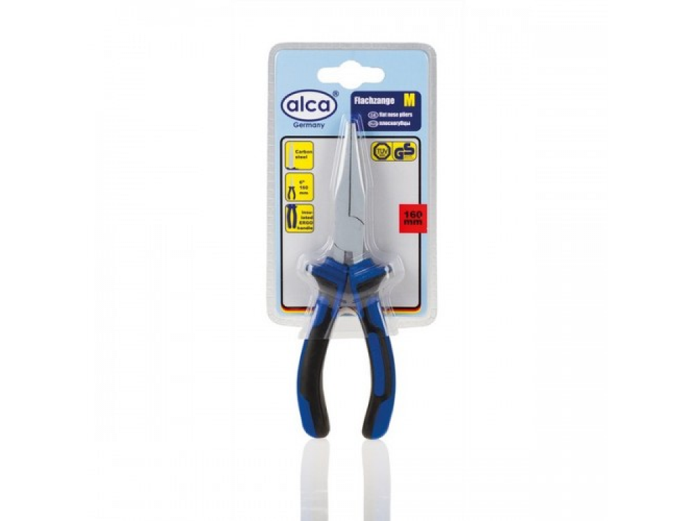 Плоскогубцы 160 мм. Карбоновая сталь твердости; HCR 42-48. Изолированные эргономичные ручки.