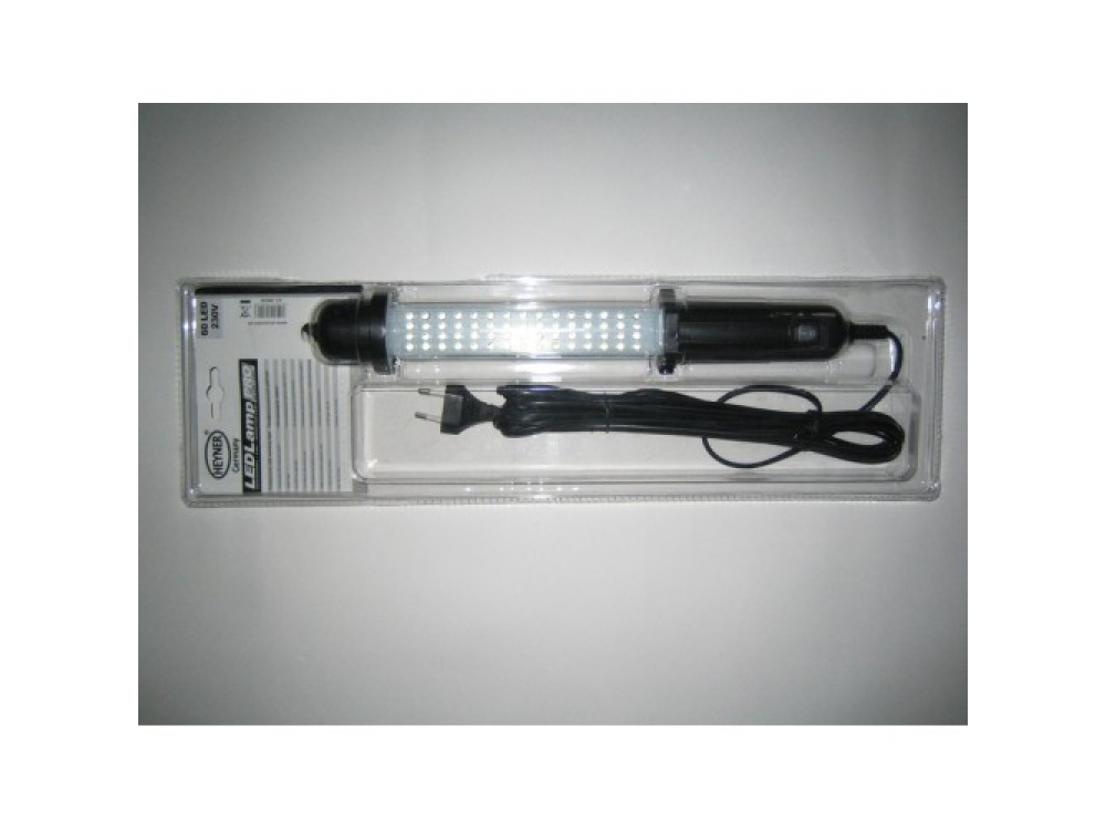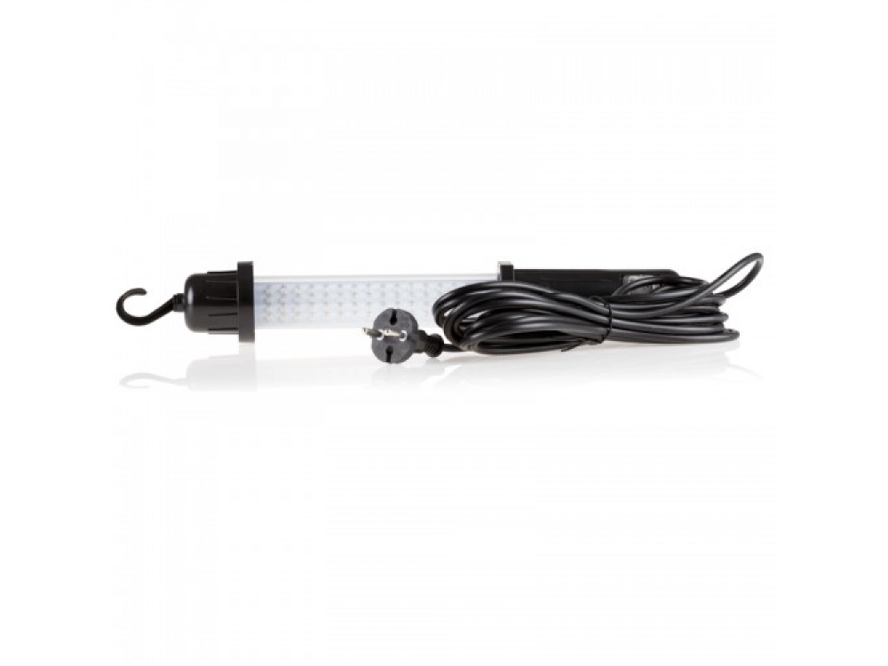 Лампа светодиодная 230 В. Брызгозащищенная. 60 светодиодов. 400 лм. Кабель 5 метров. Подвижный, прочный крючек. Размеры 36х5,5 см.