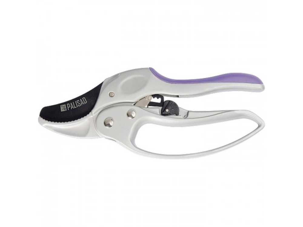 Универсальный секатор с прямым резом, двухкомпонентными рукоятками и фиксатором на нижней рукоятке. Снабжен храповым механизмом, повышающим режущую способность инструмента без увеличения прилагаемого усилия. Защитная дуга предохраняет пальцы от уколов шипов, колючек и мелких веток. Предназначен для выполнения работ по уходу за садом. Рекомендуется для обрезки живых веток диаметром до 20 мм. Зубчики на нижнем лезвии удерживают ветку во время работы.