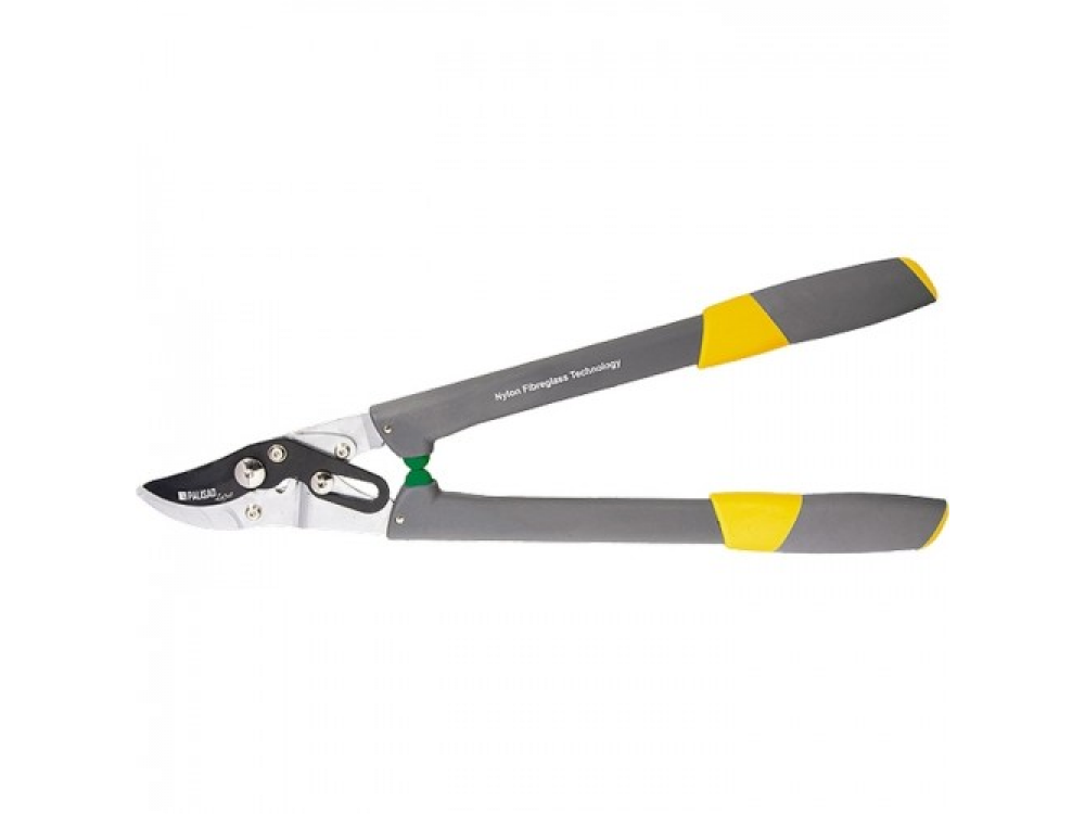 Сучкорез с прямым резом, облегченные рукоятки. Верхнее режущее лезвие выполнено из японской стали SK5 и покрыто тефлоном для снижения трения. Оснащен двухрычажным механизмом, который увеличивает силу реза на 40 %. Рукоятки из армированного стекловолокном полиамида с двухкомпонентными ручками уменьшают вес изделия и облегчают работу с инструментом. Предназначен для дистанционной обрезки живых веток деревьев и кустарников диаметром до 35 мм.