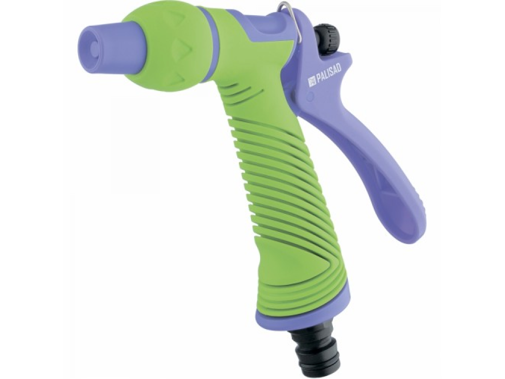 Эргономичный пистолет-разбрызгиватель с курком в современном исполнении из надежных металлических и пластиковых элементов. Конструкция обеспечивает прочность и простоту в эксплуатации. Удобно держать в руке. Предусмотрена плавная регулировка напора: от сильной струи до мелкодисперсного распыления, в зависимости от поставленной задачи, также предусмотрена полная остановка подачи воды. Управление легко осуществляется с помощью одной руки. Совместим со всеми элементами системы полива «PALISAD» и «PALISAD LUXE».