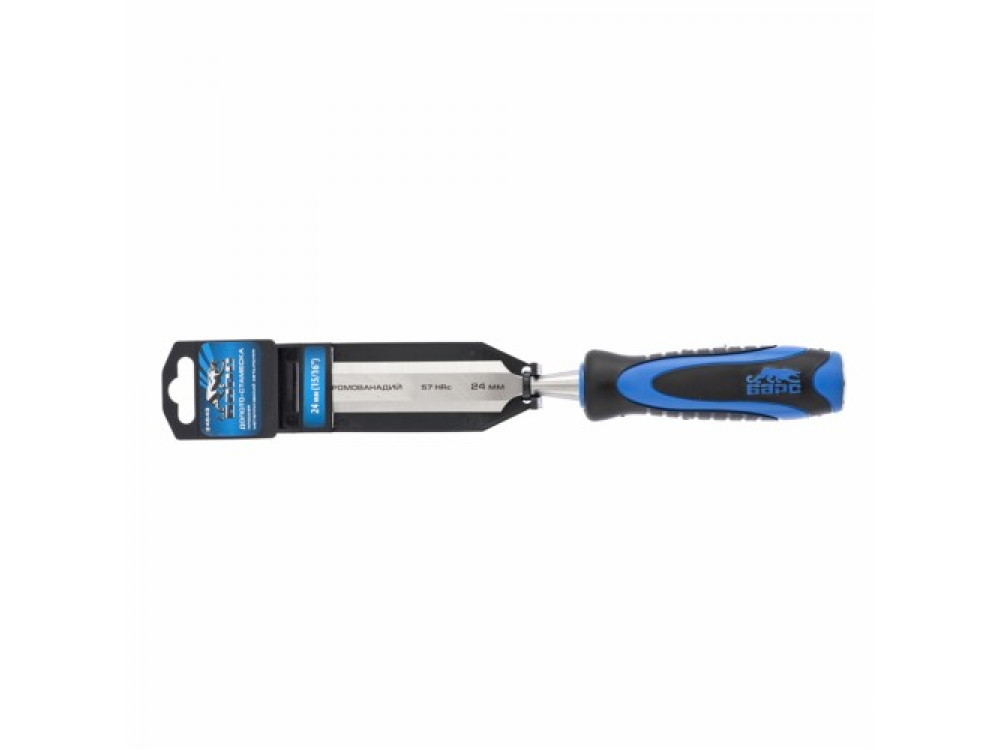 Главная / Автотовары / Ручной инструмент / Инструмент слесарный / Стамески / Долото-стамеска,плоская,24мм, двухкомпонентная рукоятка,металлический затыльник БАРС