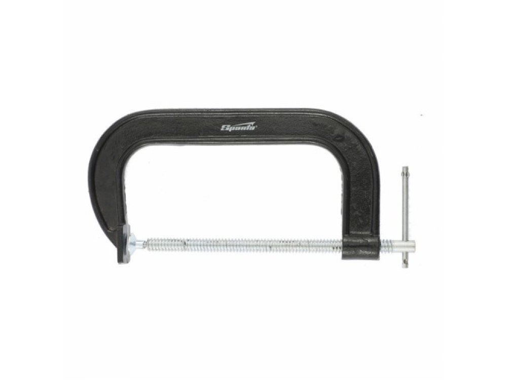 Рама струбцины покрыта цветным лаком. Винт струбцины со специальным зажимом и крупной червячной резьбой позволяет надежно фиксировать предметы.