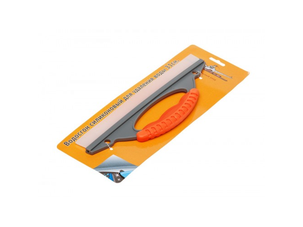Данная модель водосгона подойдет как для уборки на бытовом, так и на профессиональном уровне. Длина водосгона составляет 31 см. Для удобной эксплуатации предусмотрена ручка ярко-оранжевого цвета, повторяющая анатомическую форму сжатой ладони. Рабочая поверхность изделия изготовлена из высокопрочного силикона, который не подвержен преждевременному износу и стиранию.