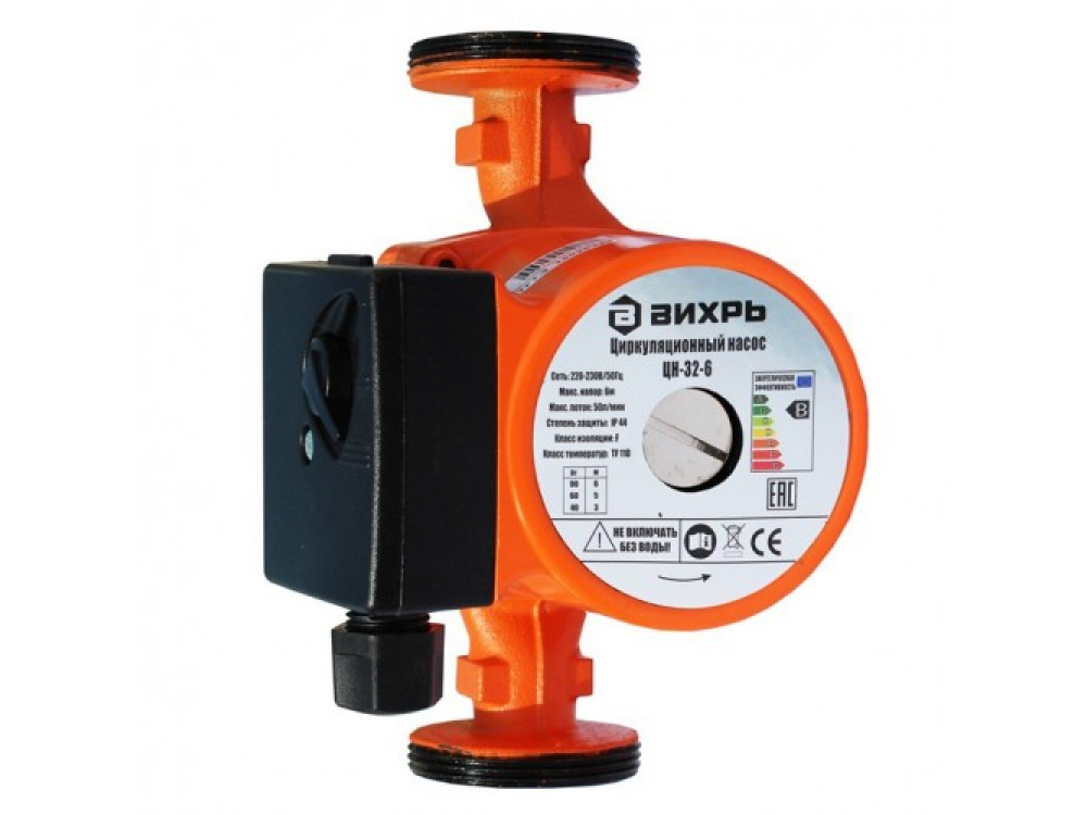 Циркуляционный насос Вихрь ЦН-32-6 68/7/4 предназначен для бытового использования. Характеризуется бесшумностью в работе, надежностью и долговечностью. Электродвигатель охлаждается перекачиваемой водой. Имеются три режима работы, каждый из которых влияет на скорость движения теплоносителя.